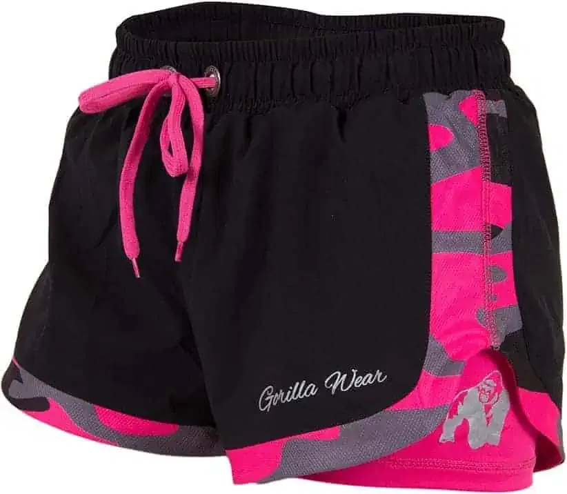 The perfect sport shorts. The Denver short is a cool and sporty piece with an elasticised drawstring waist for an easy fit, and spandex inner layer that moves along with you. Bold neon colour options, camo print mesh, and silver print details make for a cute stylish finish to your gym outfits! The quick-dry lightweight materials make these easy to pack with your gear, quick to dry, and super to work out in. Gorilla Wear prides itself on offering the best quality and doing it in style. It’s time to show the world that you’re a member of #TEAMGORILLAWEAR