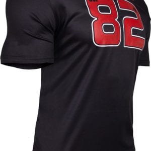 Are you ready to rep your favorite workout brand? Then this athletic-cut Gorilla Wear USA shirt is the perfect choice for you. This athletic-cut shirt fits closer to the body, you’ll love flaunting your style when you sport this trendy Gorilla Wear USA shirt. The number 82 is printed on the front and back of the shirt. We have been providing the motivated with high-quality sports apparel since 1982 and we are proud to show it. It’s time to show the people that you are a member of the GORILLA WEAR Family where you can choose between the colors Black/Red and Black/Gray.